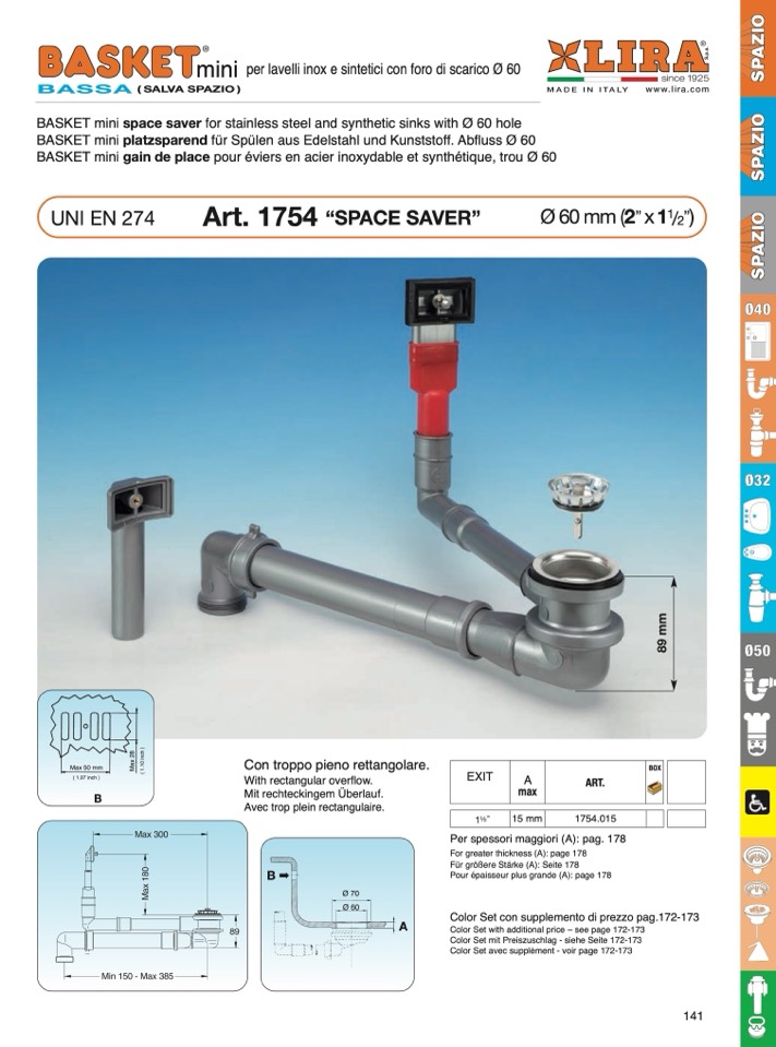 für Spülen aus Edelstahl und Kunststoff. Abfluss Ø 60