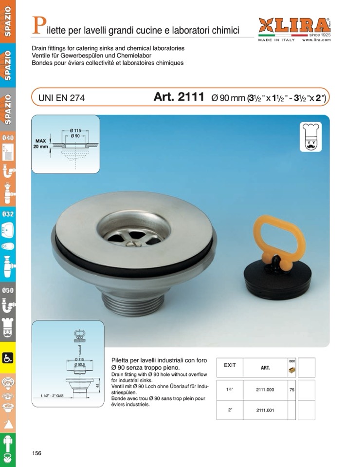 Ventil mit Ø 90 Loch ohne Überlauf für Indu-