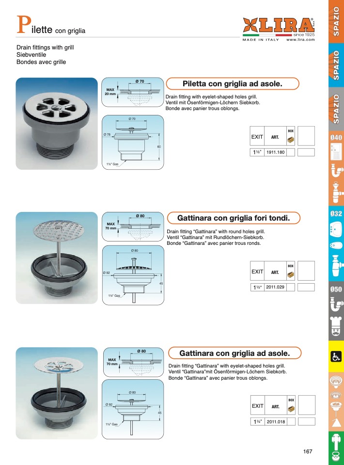 Drain fitting “Gattinara” with eyelet-shaped holes grill.