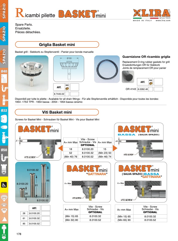 Disponibili per tutte le pilette - Available for all drain fittings - Für alle Stopfenventile erhältlich - Disponible pour toutes les bondes: