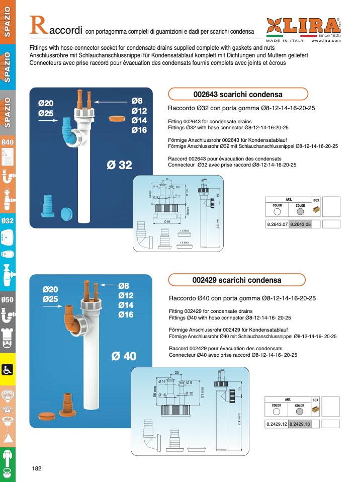 con portagomma completi di guarnizioni e dadi per scarichi condensa