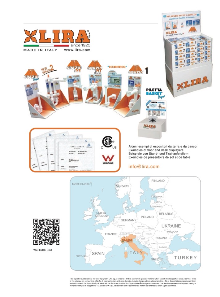 I dati esposti in questo catalogo non sono impegnativi. LIRA S.p.A. si riserva il diritto di apportare in qualsiasi momento tutte le varianti ritenute opportune senza preavviso. - Data