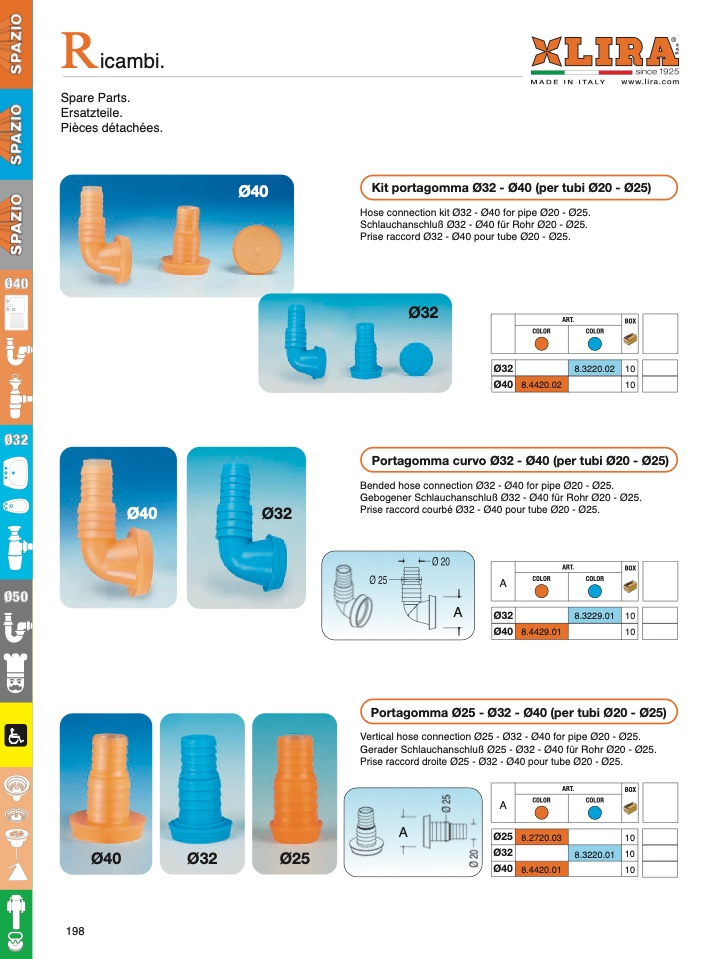 Vertical hose connection Ø25 - Ø32 - Ø40 for pipe Ø20 - Ø25.