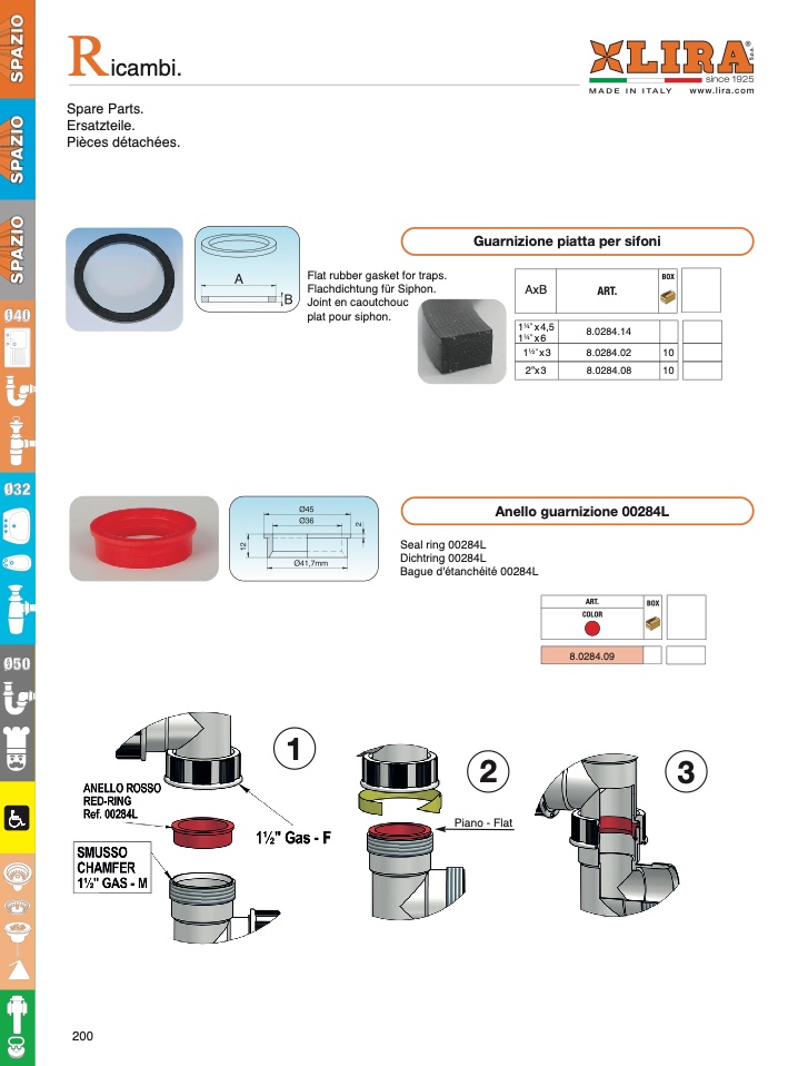 Guarnizione piatta per sifoni
