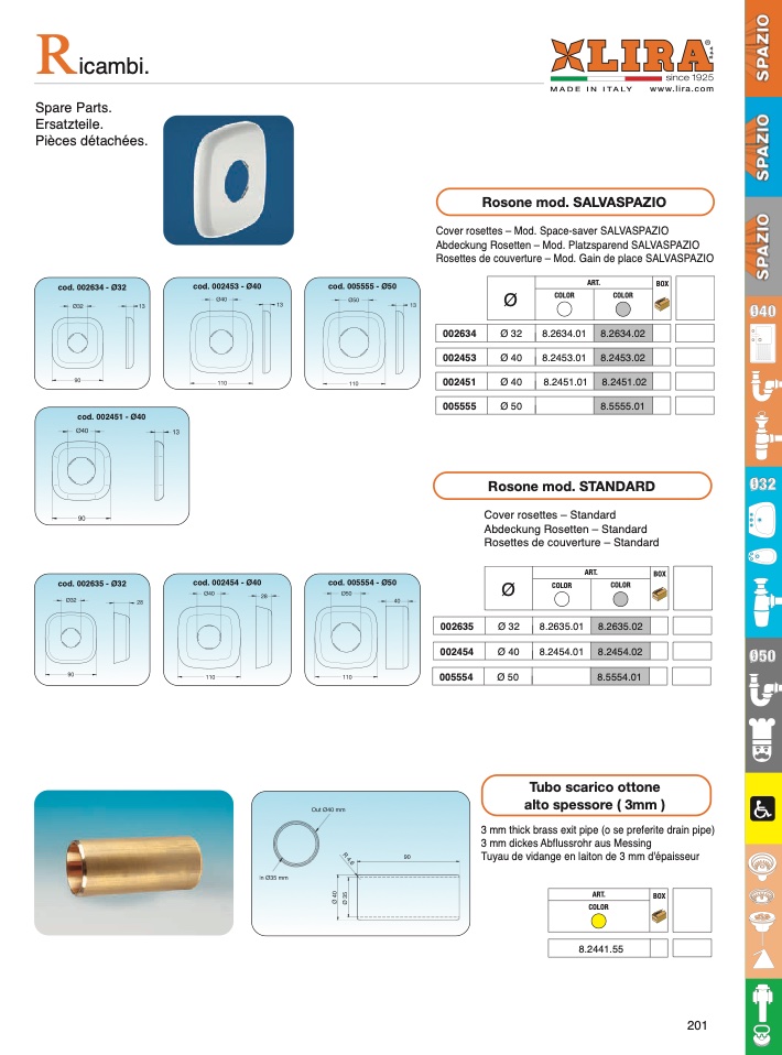 Rosettes de couverture – Mod. Gain de place SALVASPAZIO