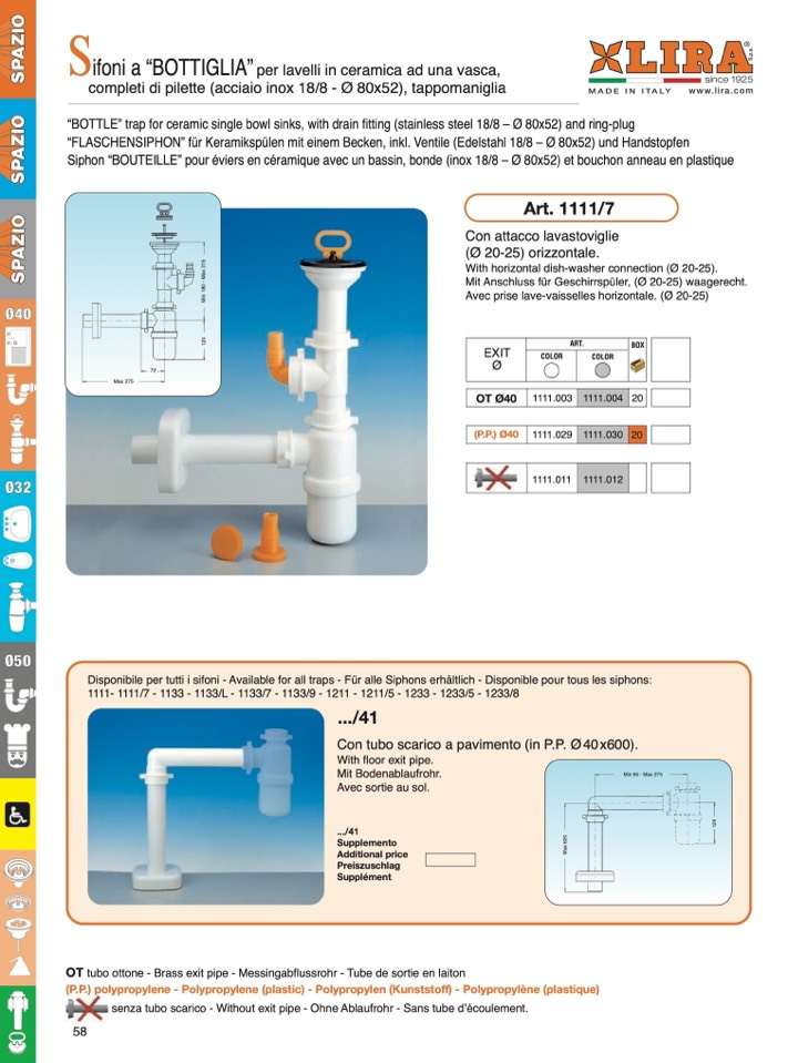 Disponibile per tutti i sifoni - Available for all traps - Für alle Siphons erhältlich - Disponible pour tous les siphons: