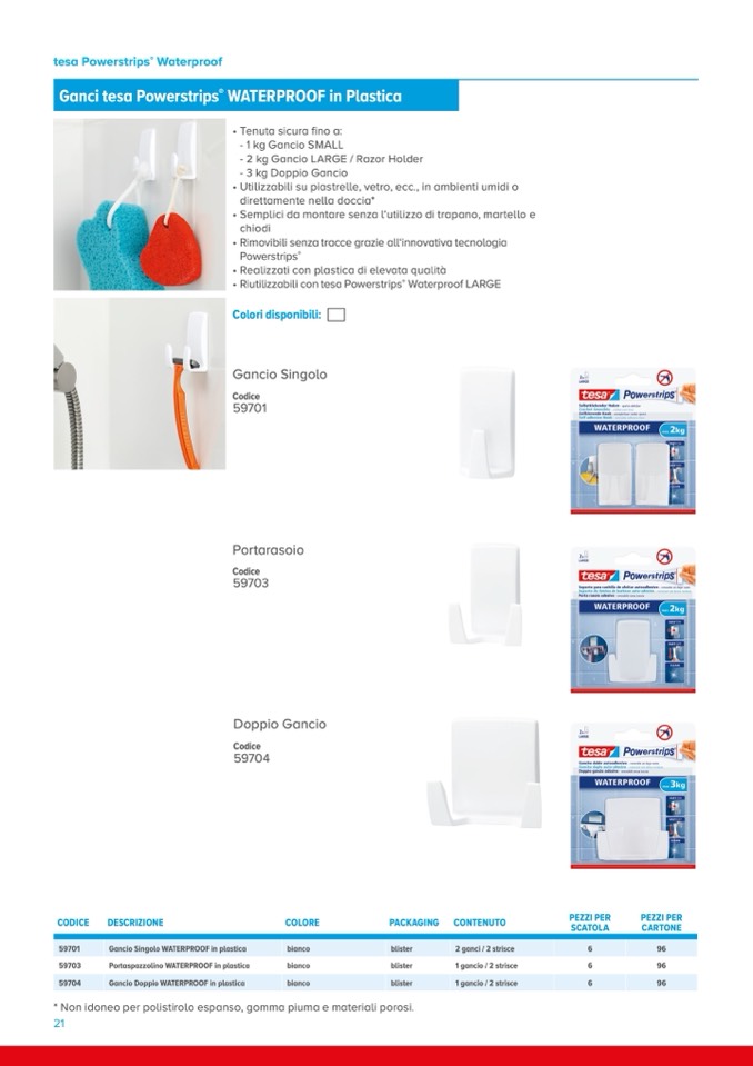 * Non idoneo per polistirolo espanso, gomma piuma e materiali porosi.