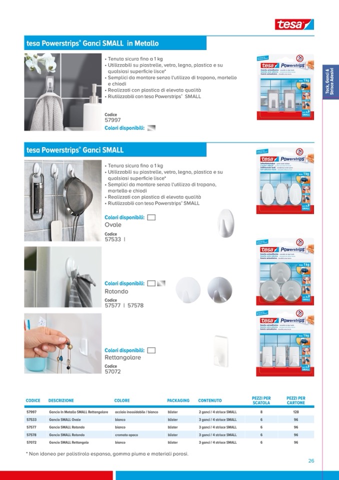 • Riutilizzabili con tesa Powerstrips
