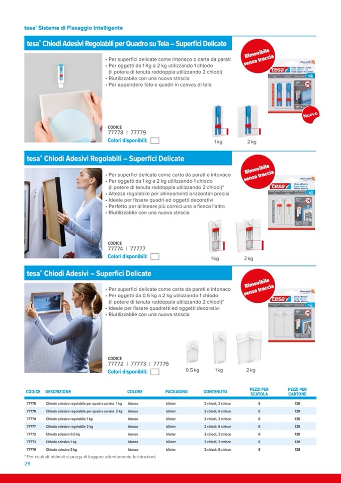 • Ideale per fissare quadri ed oggetti decorativi