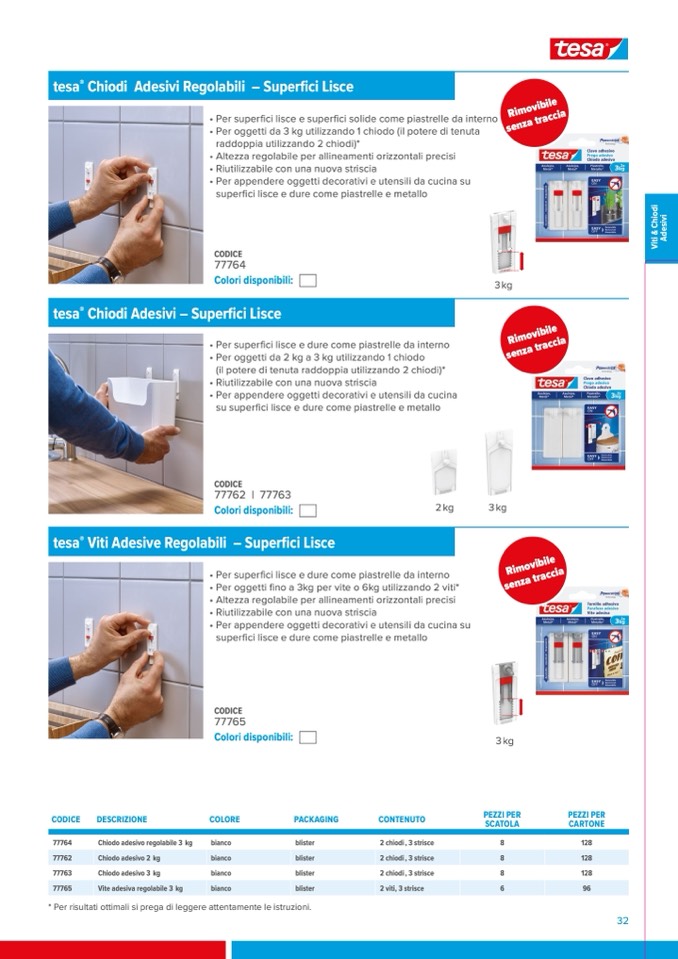 Chiodi Adesivi Regolabili – Superfici Lisce