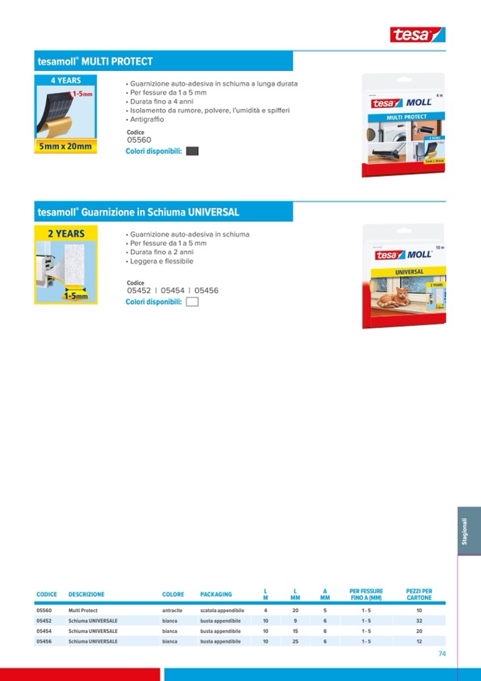 • Guarnizione auto-adesiva in schiuma a lunga durata