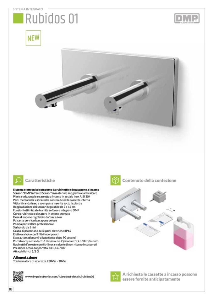 Sistema elettronico composto da rubinetto e dosasapone a incasso