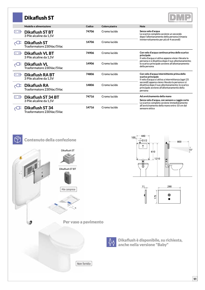 Senza velo d’acqua, con sensore a raggio corto
