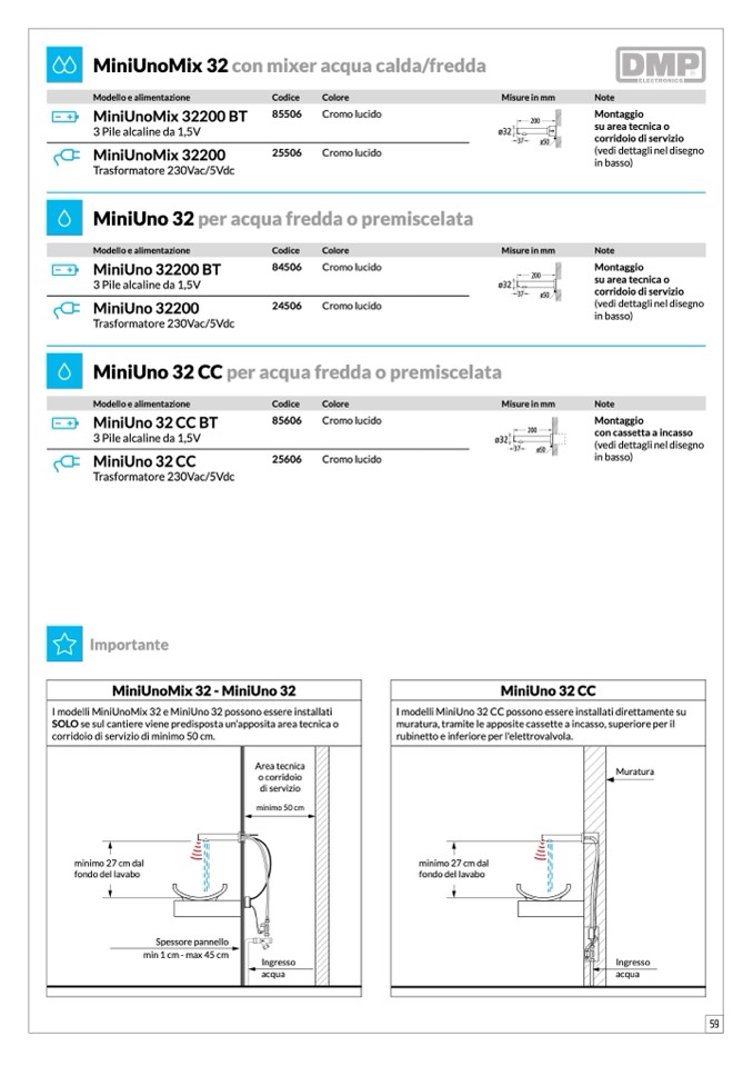 I modelli MiniUnoMix 32 e MiniUno 32 possono essere installati