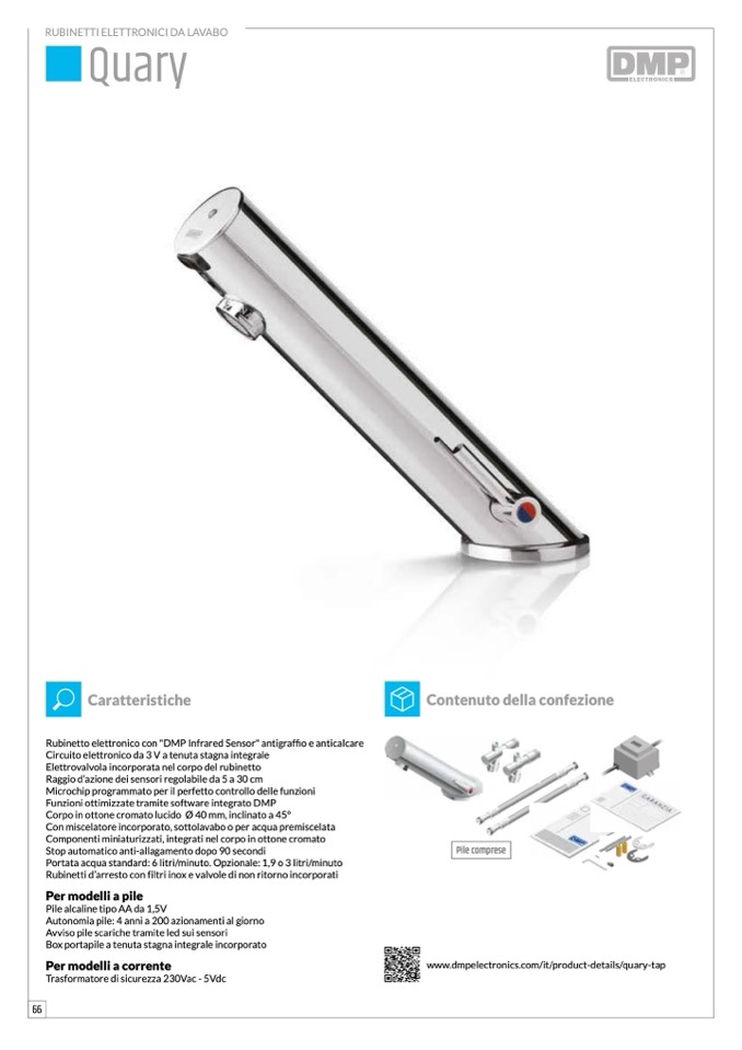Portata acqua standard: 6 litri/minuto. Opzionale: 1,9 o 3 litri/minuto