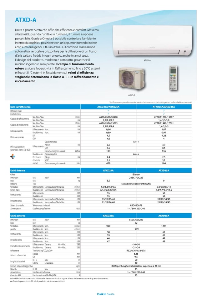 Verificare le prestazioni ufficiali di prodotto sul sito www.daikin.it