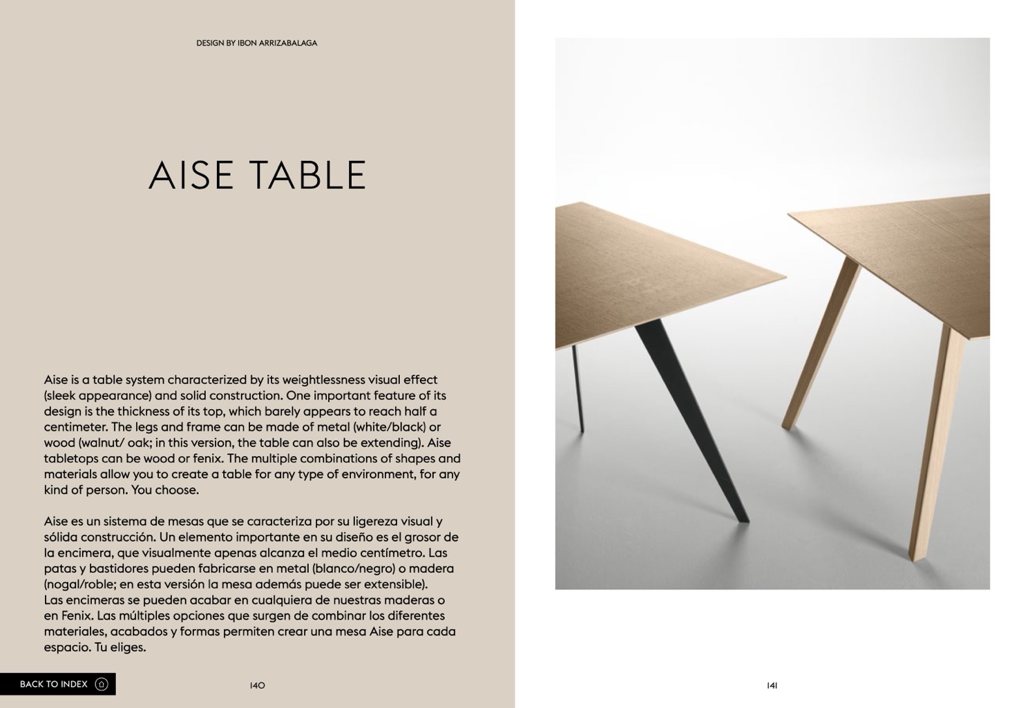 materiales, acabados y formas permiten crear una mesa Aise para cada