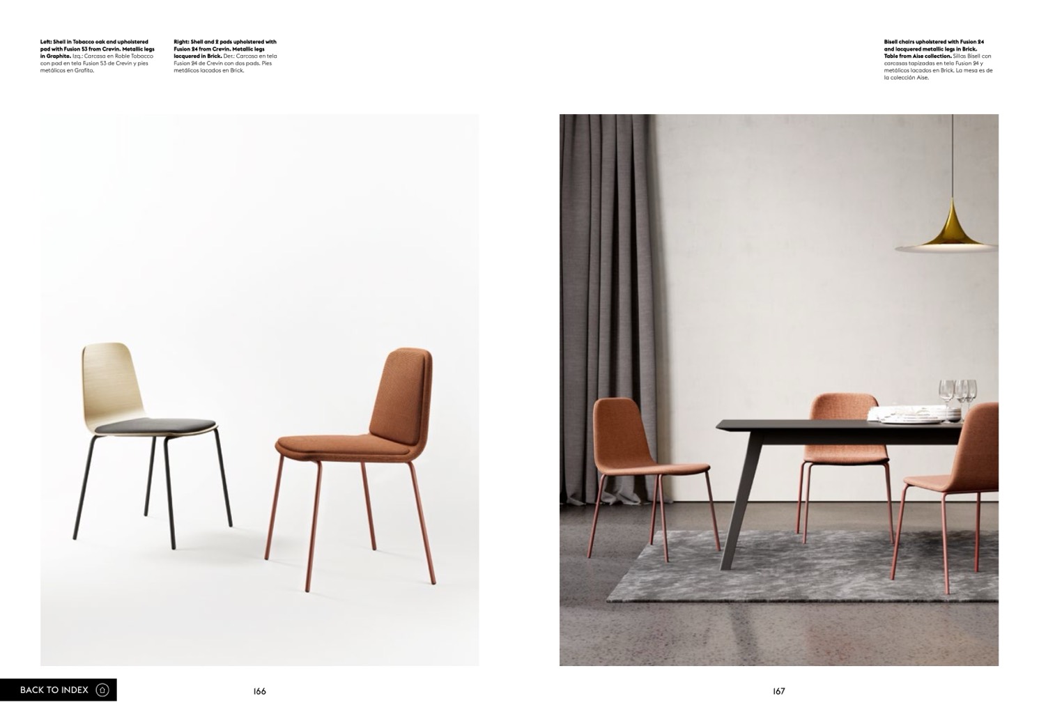 and lacquered metallic legs in Brick.