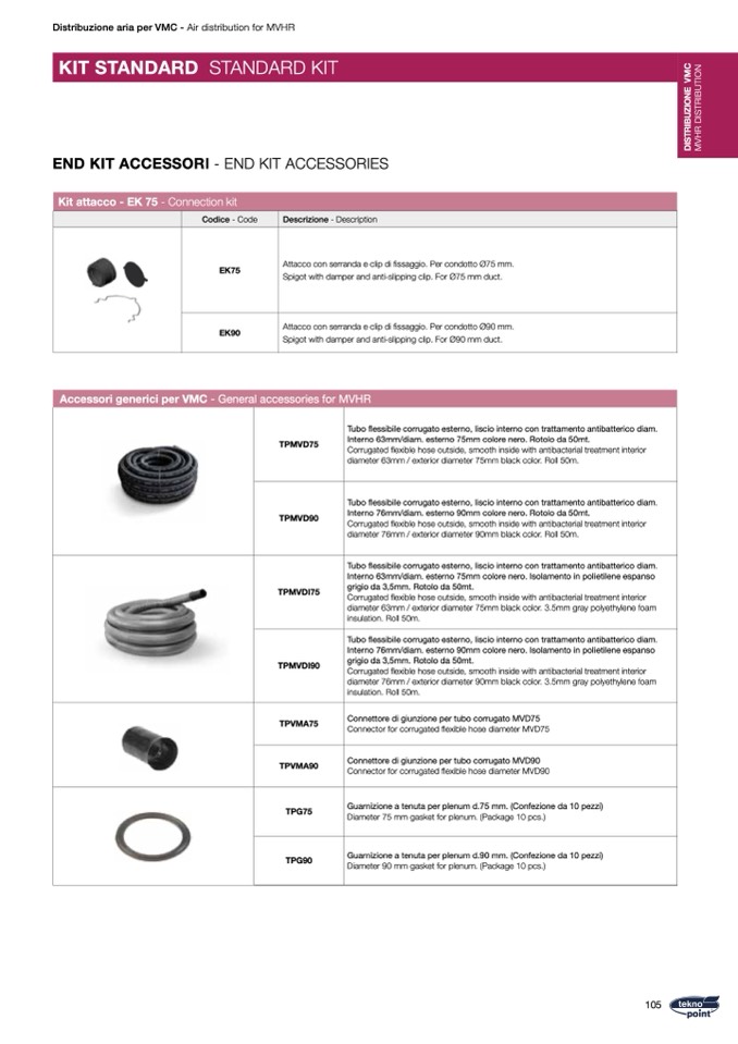 flessibile corrugato esterno, liscio interno con trattamento antibatterico diam.