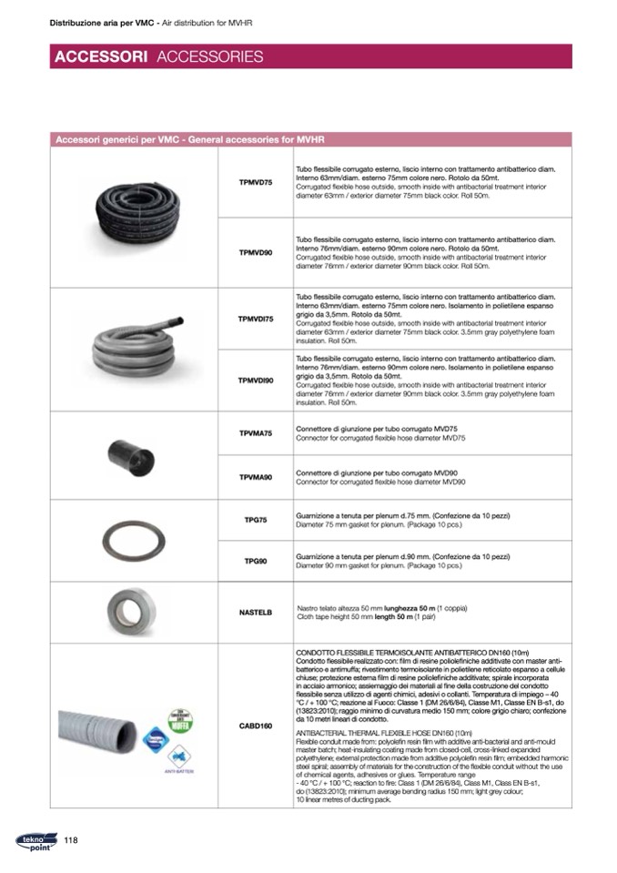 flessibile corrugato esterno, liscio interno con trattamento antibatterico diam.