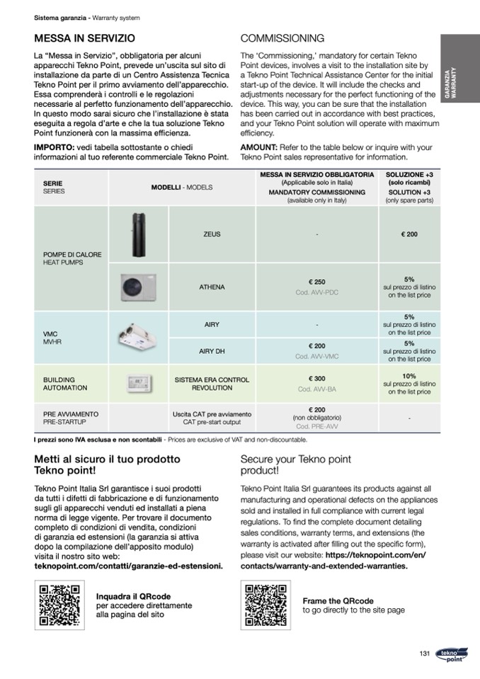 I prezzi sono IVA esclusa e non scontabili - Prices are exclusive of VAT and non-discountable.