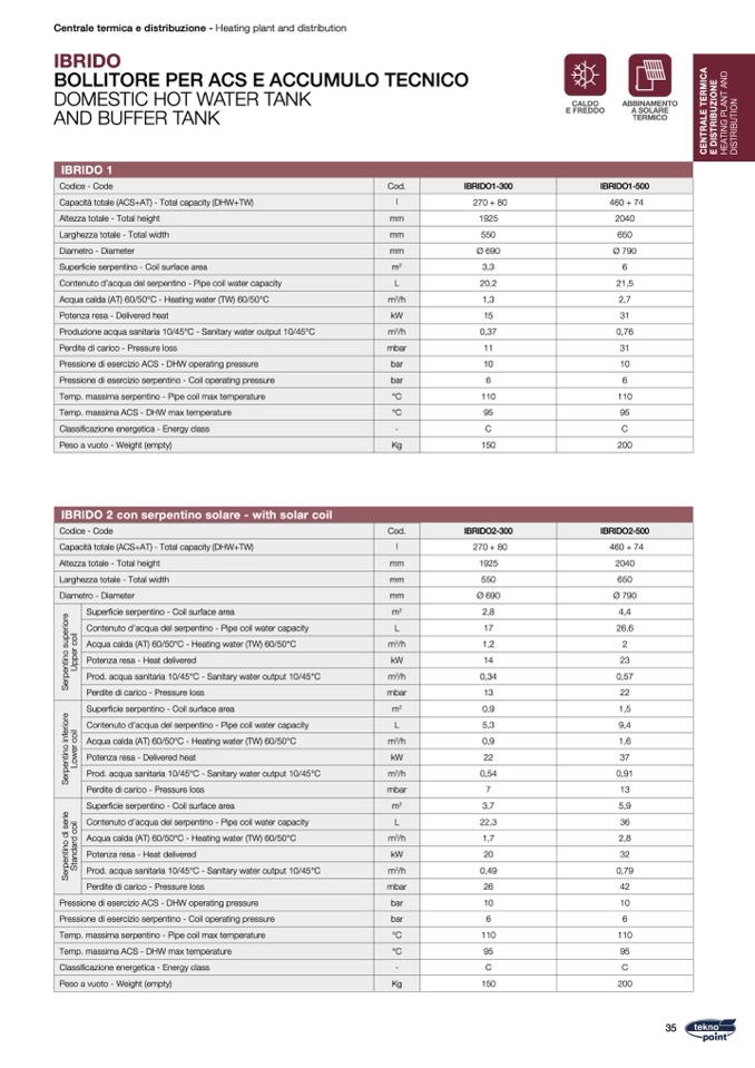 Acqua calda (AT) 60/50°C - Heating water (TW) 60/50°C