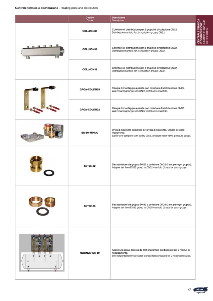 Set adattatore da gruppo DN32 a collettore DN25 (2 set per ogni gruppo).