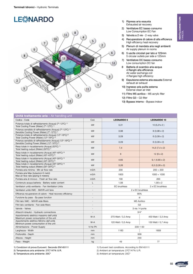1) Condizioni di prova Eurovent. Secondo EN145111