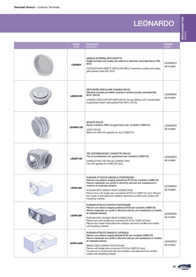 Plenum con attacco singolo posteriore Ø125 per condotto CABD125.