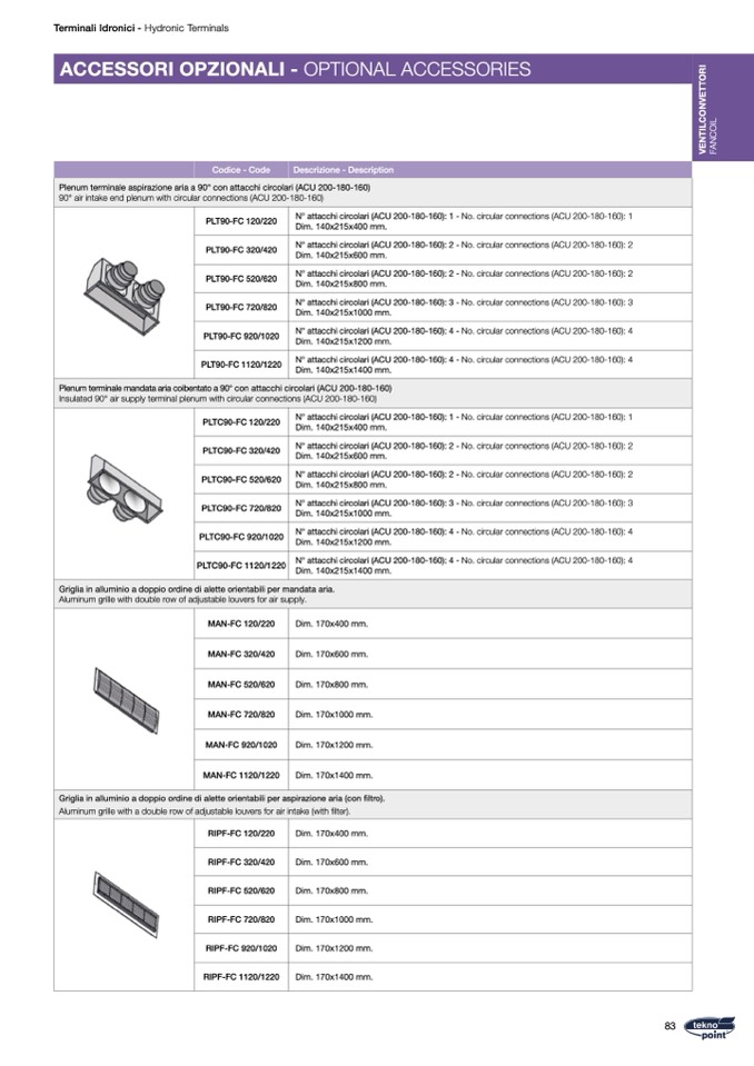 Plenum terminale aspirazione aria a 90° con attacchi circolari (ACU 200-180-160)