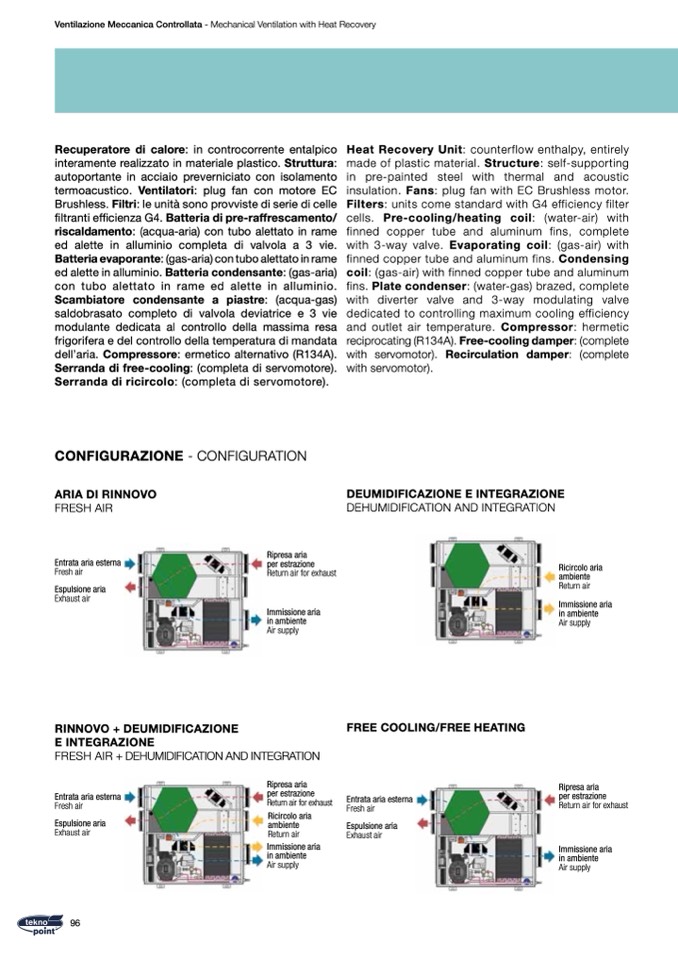 filtranti efficienza G4. Batteria di pre-raffrescamento/