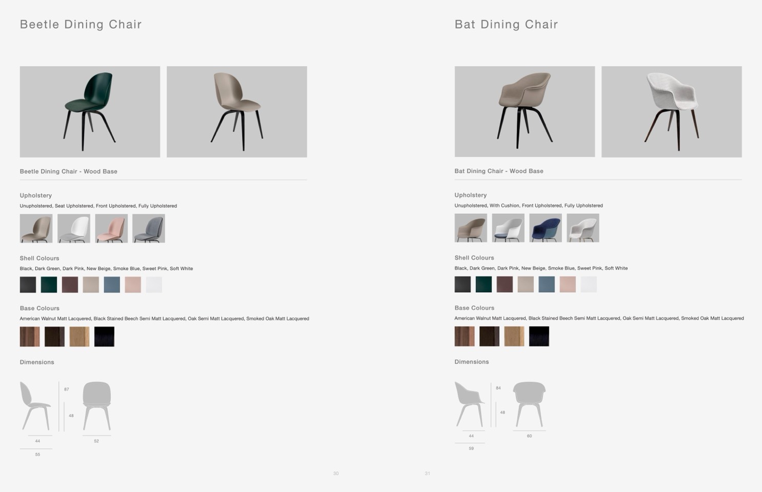 American Walnut Matt Lacquered, Black Stained Beech Semi Matt Lacquered, Oak Semi Matt Lacquered, Smoked Oak Matt Lacquered