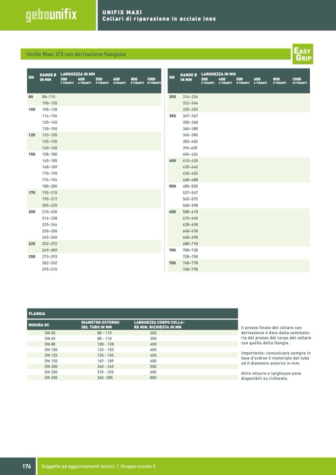 * Tutti i collari con derivazione flangiata sono disponibili solo ed esclusivamente su richiesta.