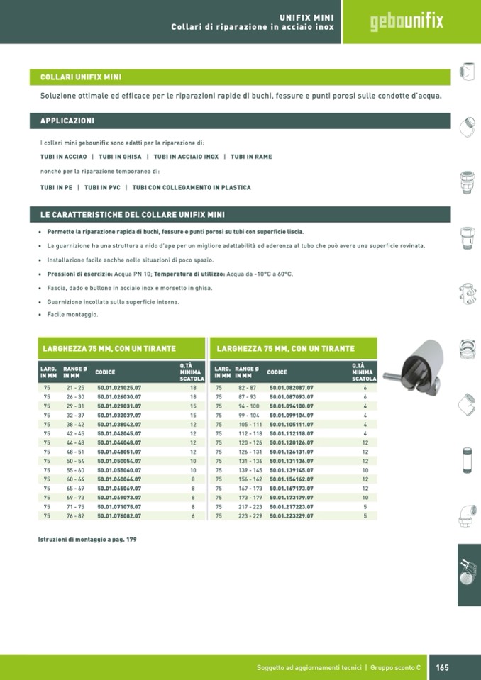 • Fascia, dado e bullone in acciaio inox e morsetto in ghisa.