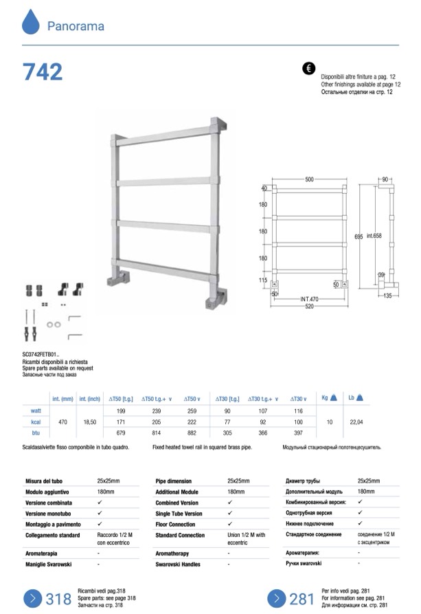 Scaldasalviette fisso componibile in tubo quadro.