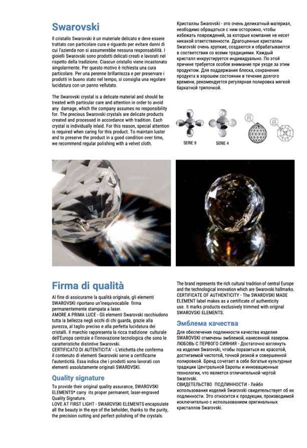 il contenuto di elementi Swarovski serve a certificarne
