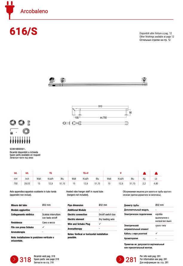 Asta appendiaccappatoio scaldante in tubo tondo