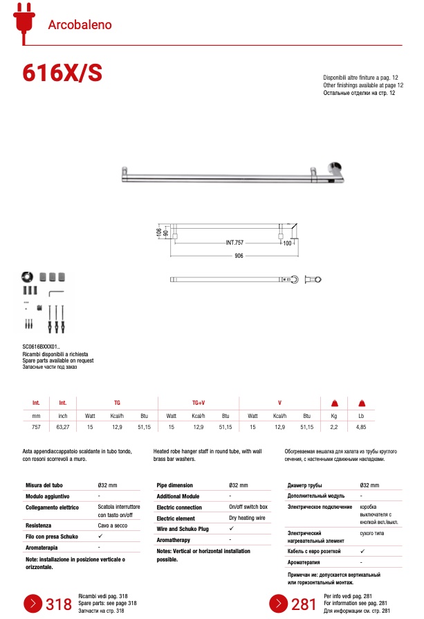 Asta appendiaccappatoio scaldante in tubo tondo,