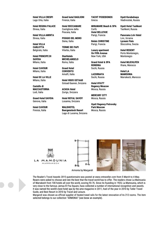 Margaroli was chosen as official supplier of heated towel rails for the latest renovation of its 212 rooms. The item