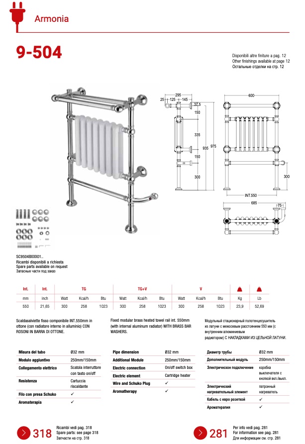 Scaldasalviette fisso componibile INT.550mm in