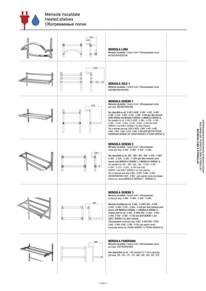 SERIE SERENO vedi MENSOLA SERENO 2 e MENSOLA SERENO 3).