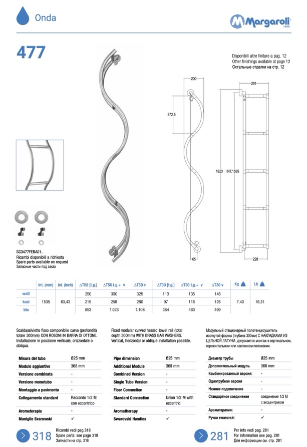 Scaldasalviette fisso componibile curvo (profondità