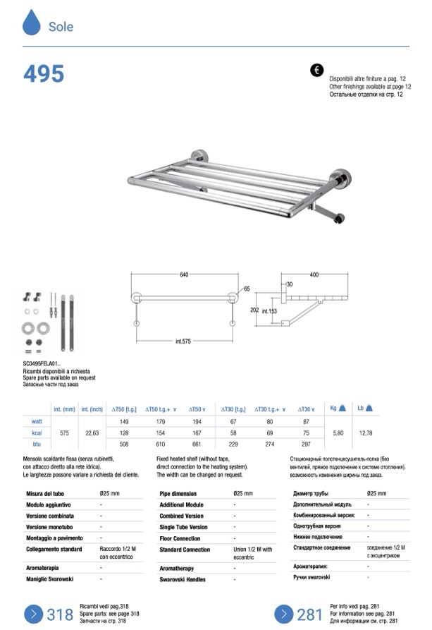 Mensola scaldante fissa (senza rubinetti,