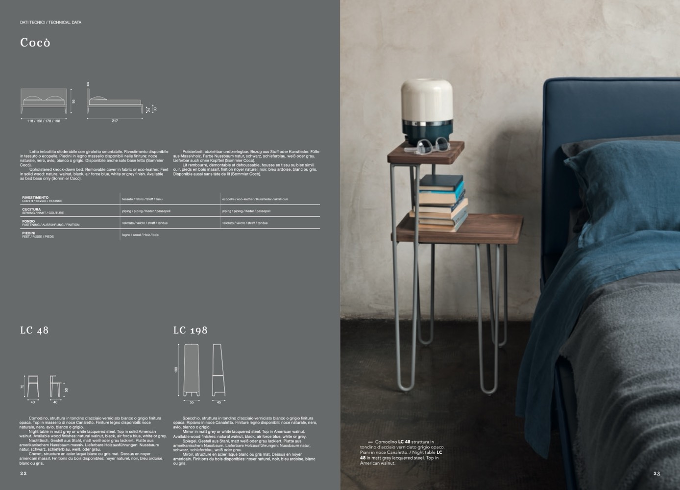 opaca. Ripiano in noce Canaletto. Finiture legno disponibili: noce naturale, nero,