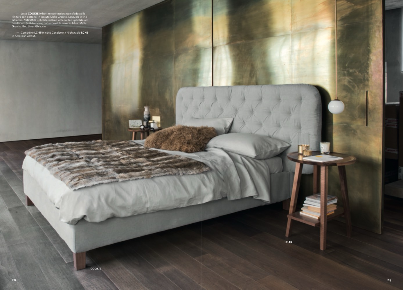 (finitura con bottone) in tessuto Malta Granito. Lenzuola in lino