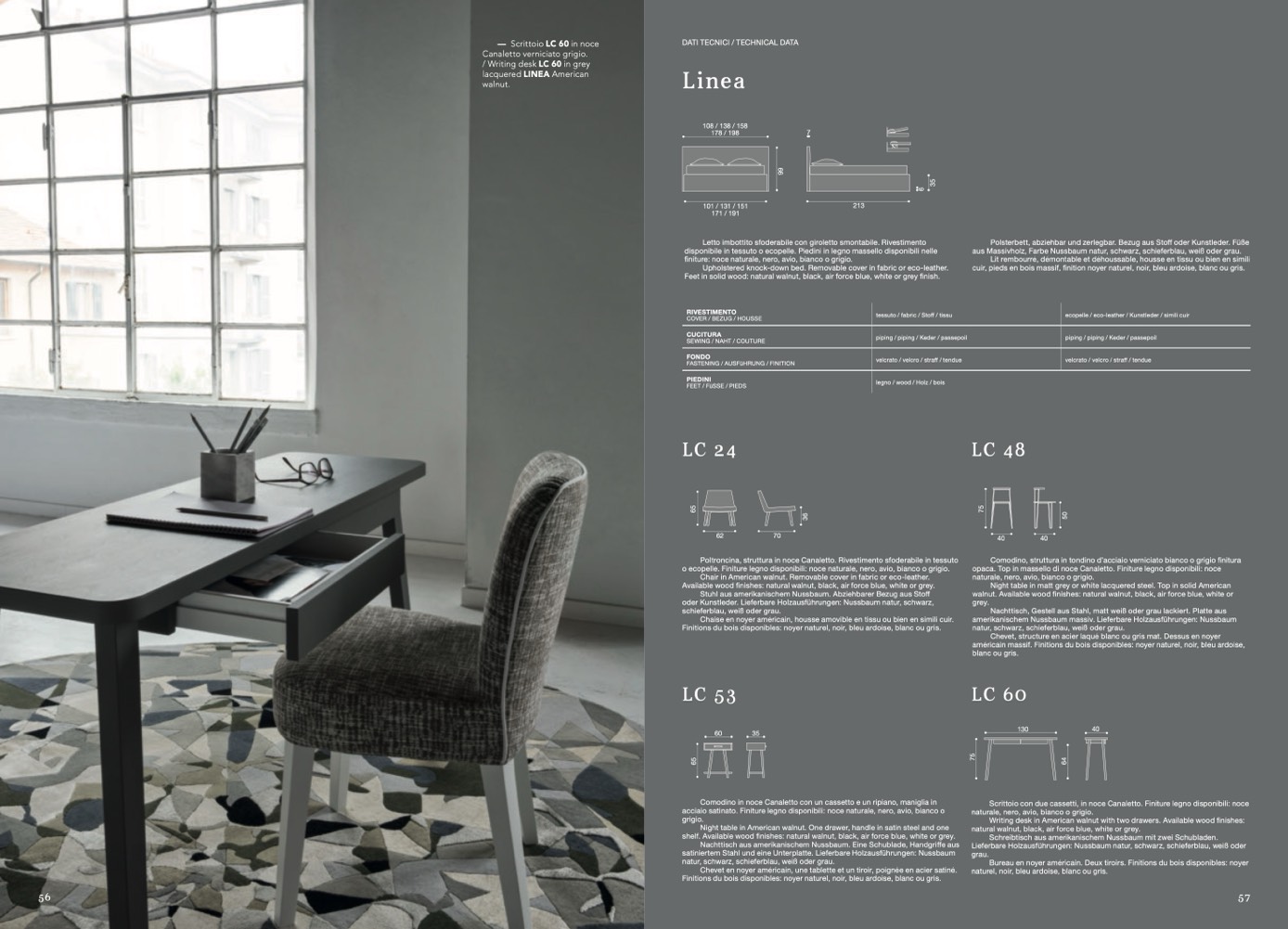 o ecopelle. Finiture legno disponibili: noce naturale, nero, avio, bianco o grigio.
