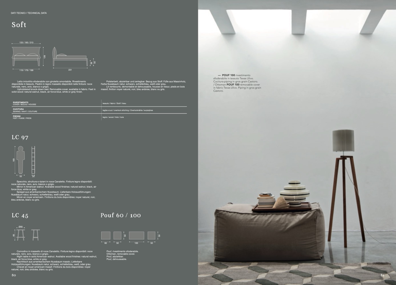 Holzausführungen: Nussbaum natur, schwarz, schieferblau, weiß, oder grau.