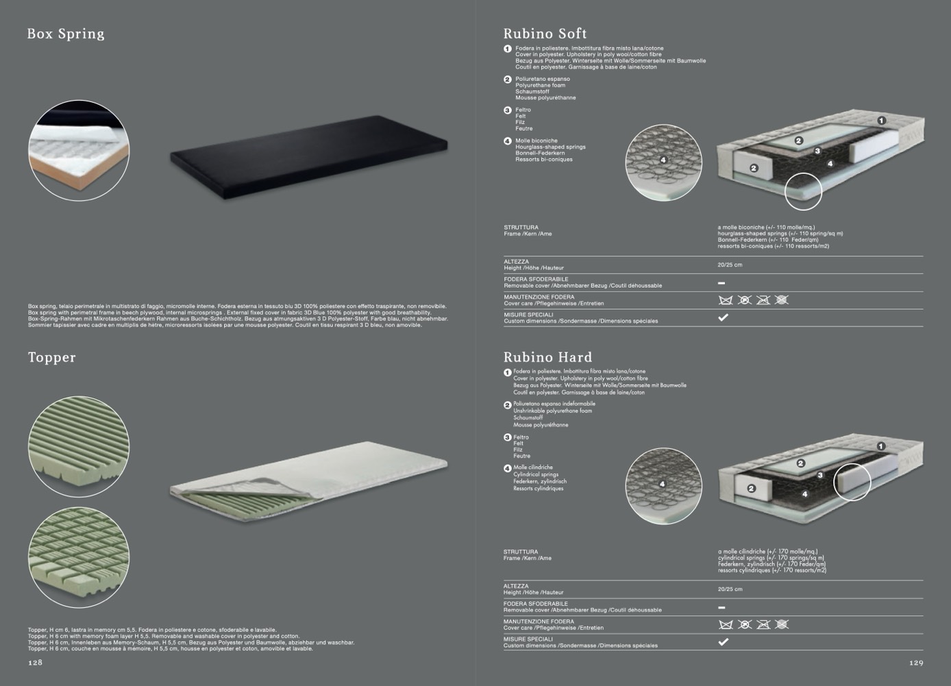 Topper, H cm 6, lastra in memory cm 5,5. Fodera in poliestere e cotone, sfoderabile e lavabile.