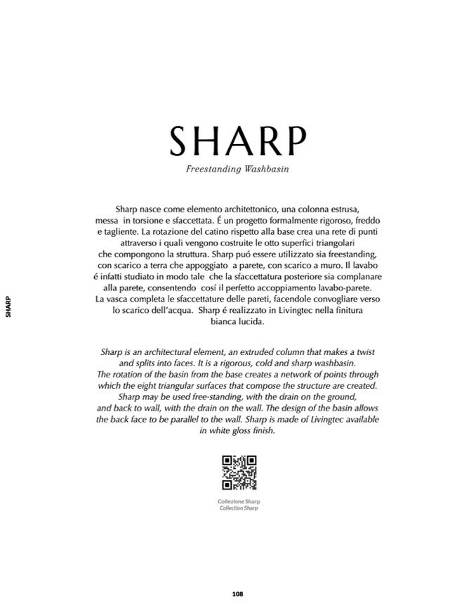 lo scarico dell’acqua. Sharp é realizzato in Livingtec nella finitura