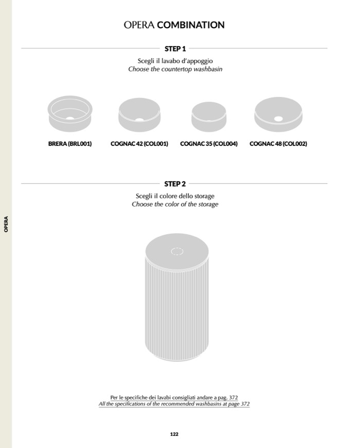 Per le specifiche dei lavabi consigliati andare a pag. 372